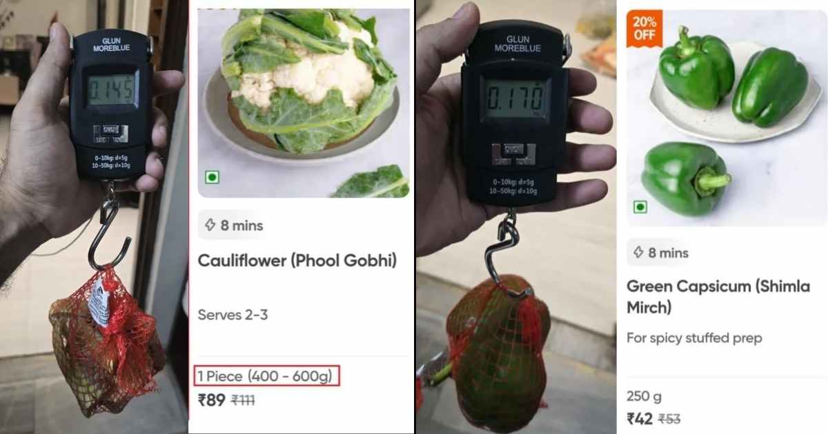 A Reddit user shared that he ordered 600 grams of cauliflower but received only 145 grams. This discrepancy prompted him to weigh all the vegetables he received, and the results were disappointing. The total weight of 1.8 kg of vegetables he ordered came down to just 1.2 kg.